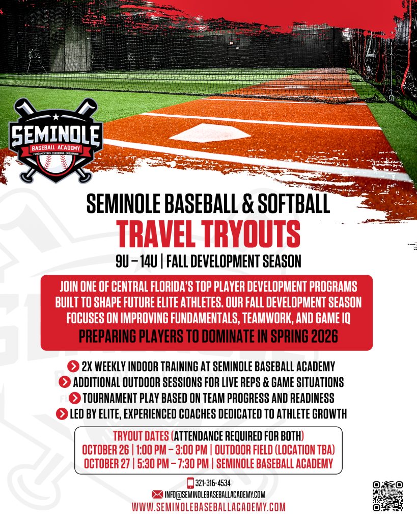 Seminole Baseball & Softball Travel Clubs Tryouts (Ages 9U–14U)